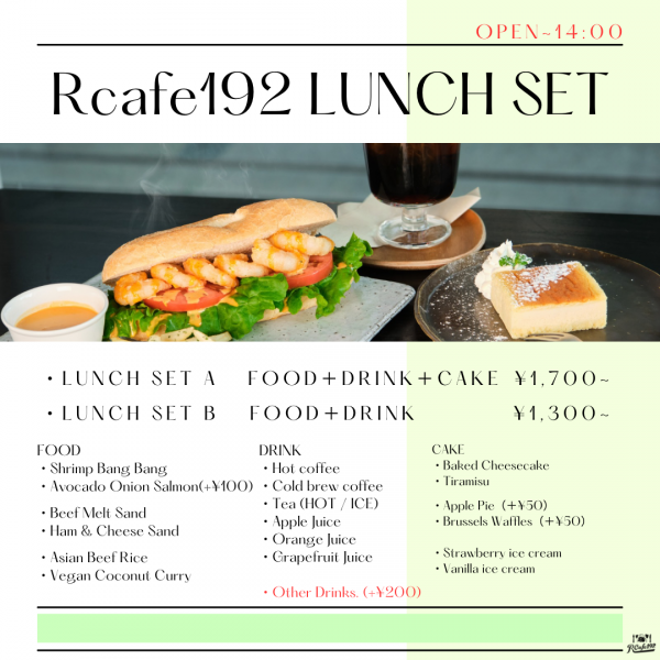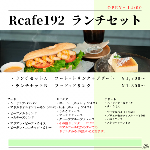 ※AHBASE定休日に関しまして、Rcafe192も定休日となります。