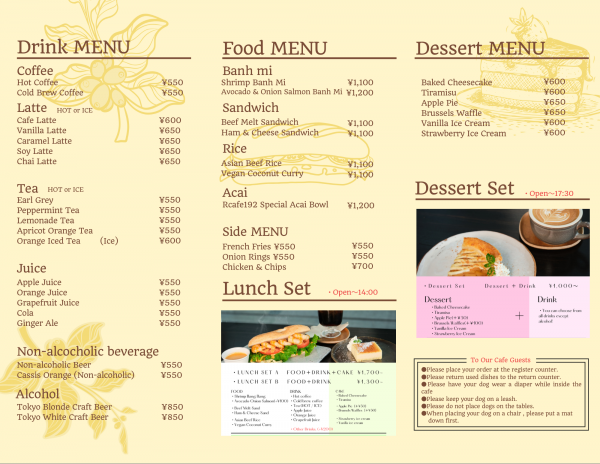 Menu for Dogs/わんちゃんメニュー