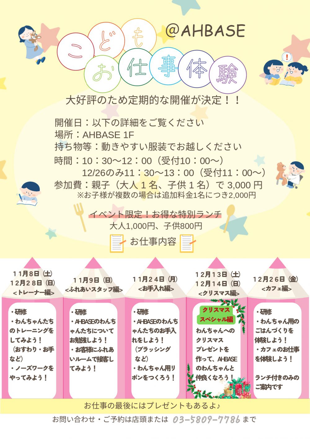 大好評につきAHBASEでのお仕事体験イベントを定期的に開催いたします!