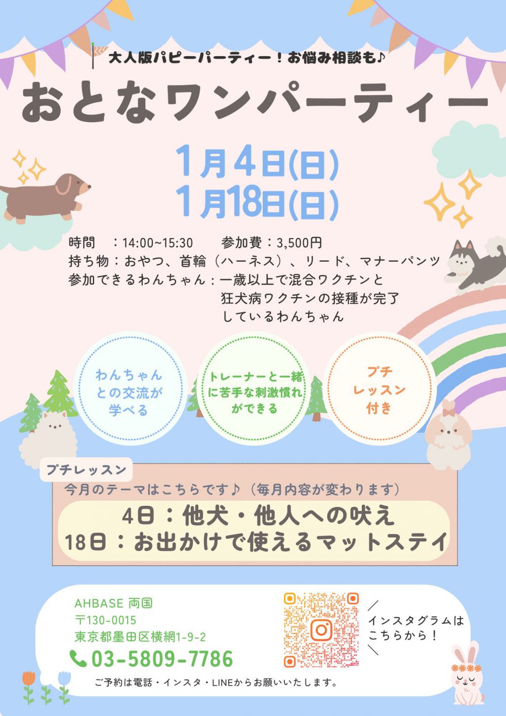 ○参加費:税込3,500円(同居犬に限り2頭目参加🉑+2,000円)
