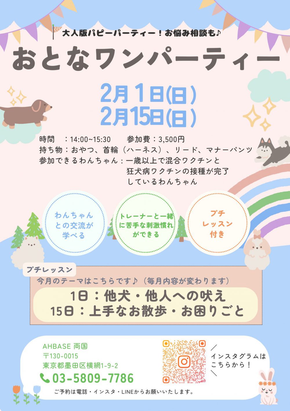 ○参加費:税込3,500円(同居犬に限り2頭目参加🉑+2,000円)