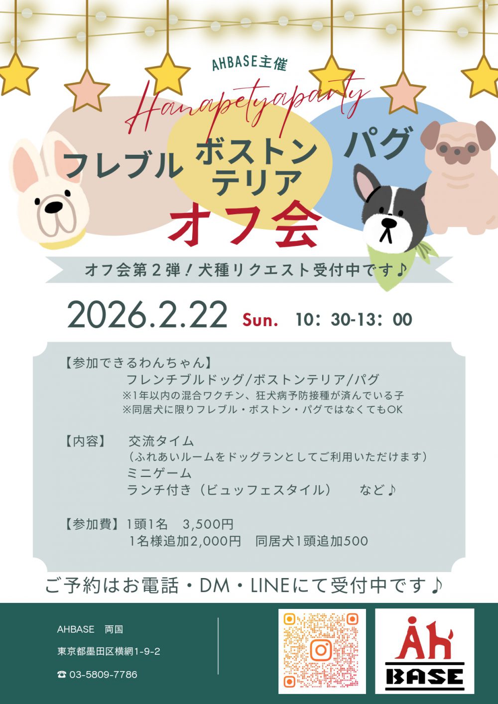 たくさんのフレブルちゃん、ボストンテリアちゃん、パグちゃんのご参加を心よりお待ちしてます🤍
