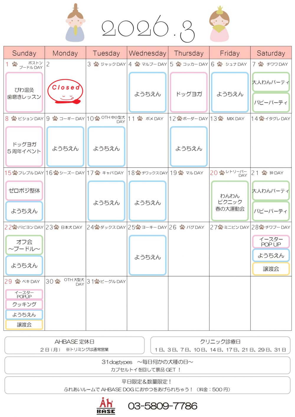TOPイベント&ニュース【3月】イベント&クリニック カレンダー