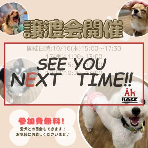 AHBASE譲渡会 10月16日(木)、17日(金)、18日(土)、19日(日)